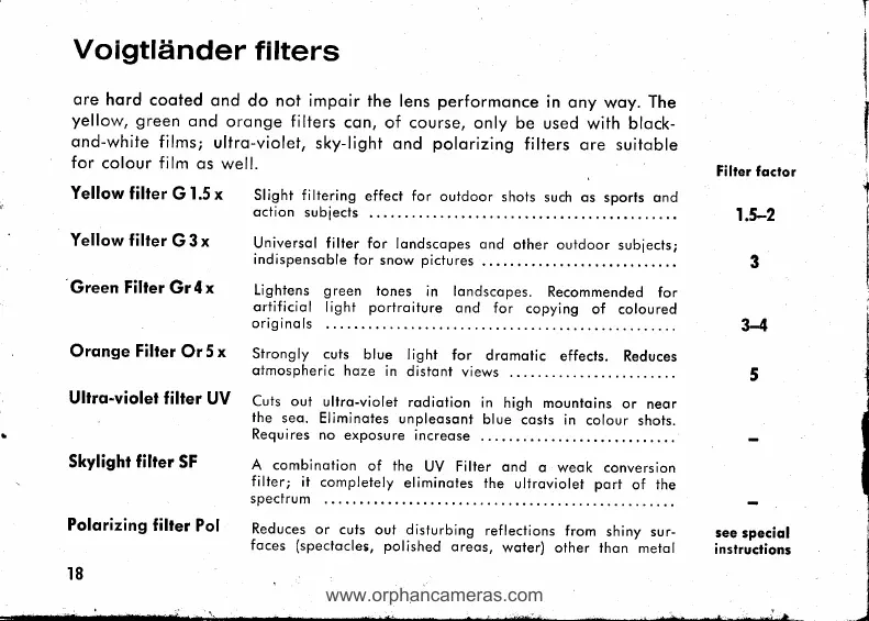 VOIGTLANDER BESSAMATIC - Voigtländer Filters; Filter Types and Applications