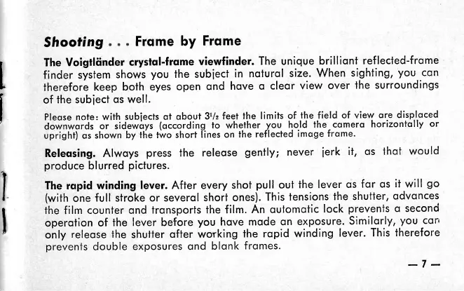 VOIGTLANDER Vito C - Shooting... Frame by Frame; Releasing; The rapid winding lever