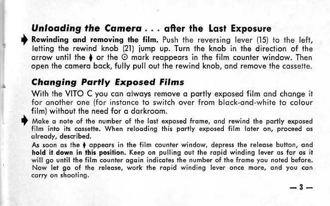 VOIGTLANDER Vito C - Unloading the Camera... after the Last Exposure; Rewinding and removing the film; Changing Partly Exposed Films