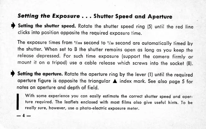 VOIGTLANDER Vito C - Setting the Exposure... Shutter Speed and Aperture; Setting the shutter speed; Setting the aperture