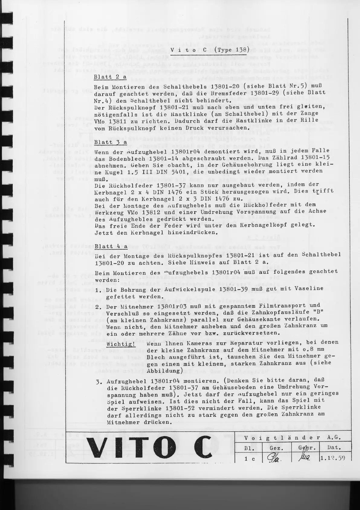 VOIGTLANDER VITO CL - Lever 13801-20 Mounting Instructions; Rapid Wind Lever 13801 r04 Dismantling and Assembly