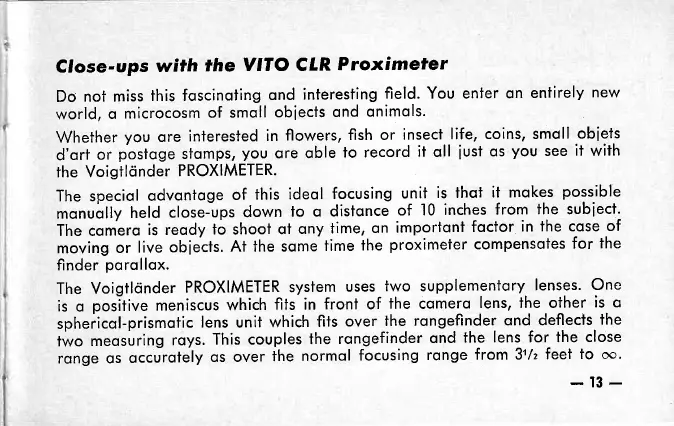 VOIGTLANDER VITO - Close-ups with the VITO CLR Proximeter