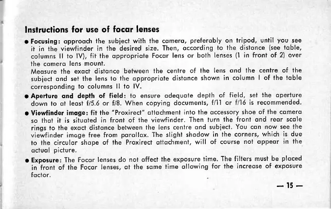 VOIGTLANDER VITO - Instructions for use of focar lenses