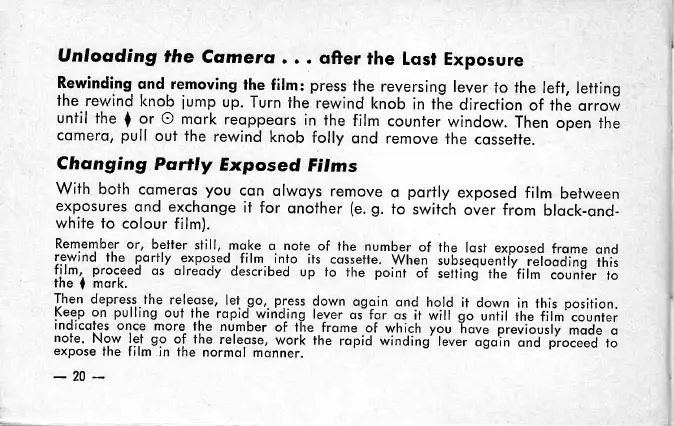 VOIGTLANDER VITO - Unloading the Camera... after the Last Exposure; Changing Partly Exposed Films
