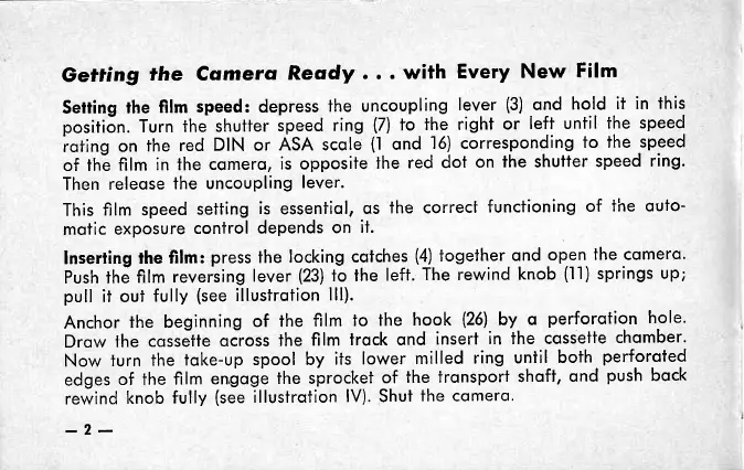 VOIGTLANDER VITO - Getting the Camera Ready; Setting the film speed; Inserting the film