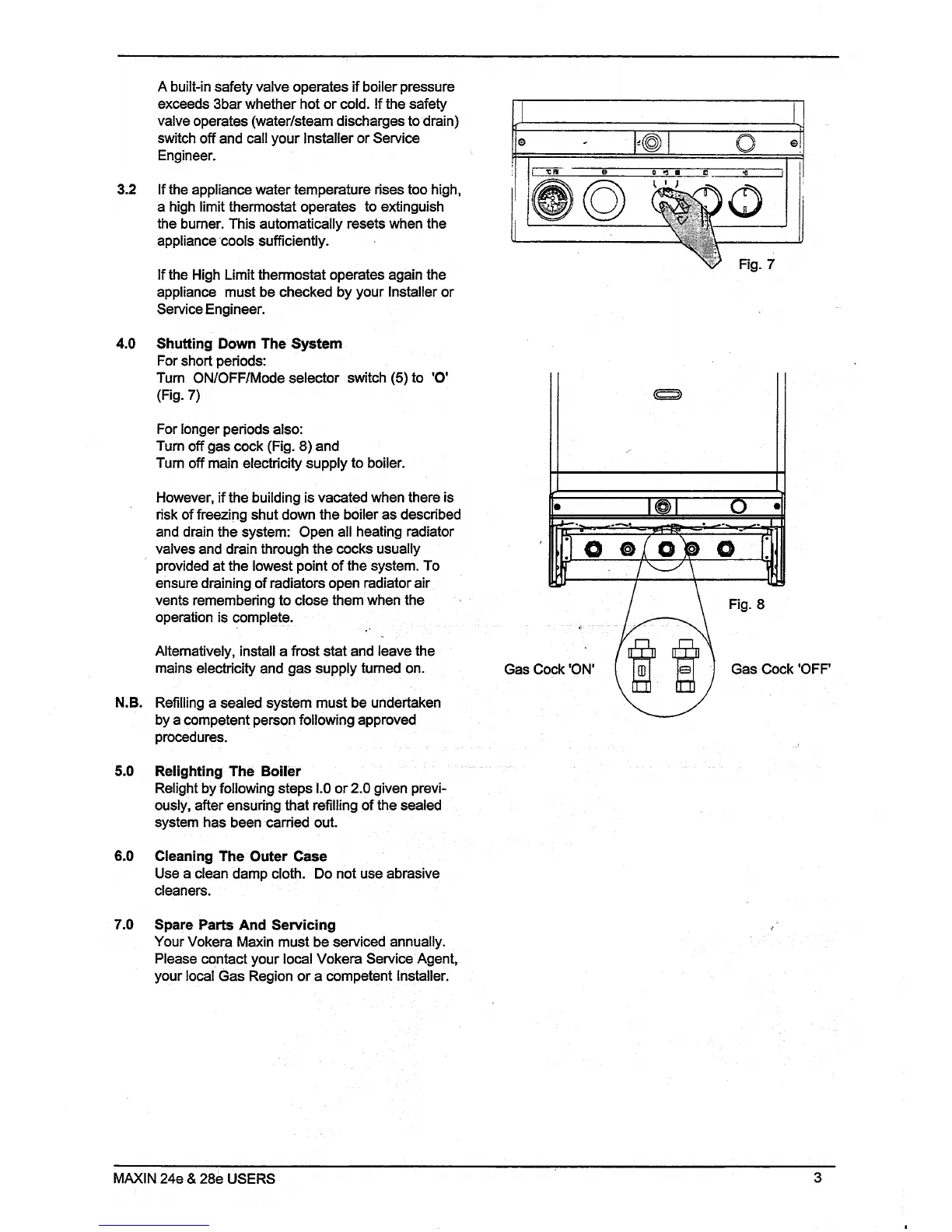 VOKERA Maxin 24e - Safety Valve and High Limit Thermostat; Shutting Down and Restarting the System; Short-Term Shutdown Procedure; Long-Term Shutdown and Frost Protection