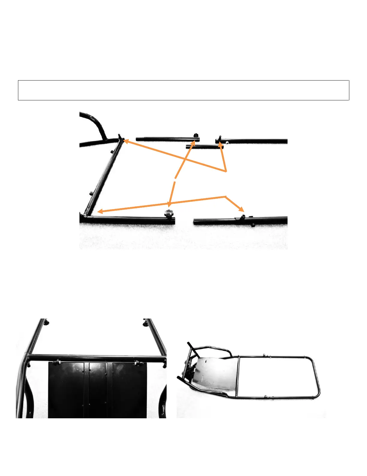 Begin assembly by attaching the monitor base to the seat base using the adjustment tubular connectors as shown in
