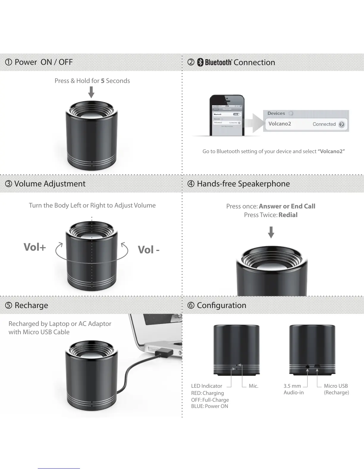 Volcano 2 XG21008 - Device Operation Guide; Power ON;OFF; Bluetooth Connection; Volume Adjustment