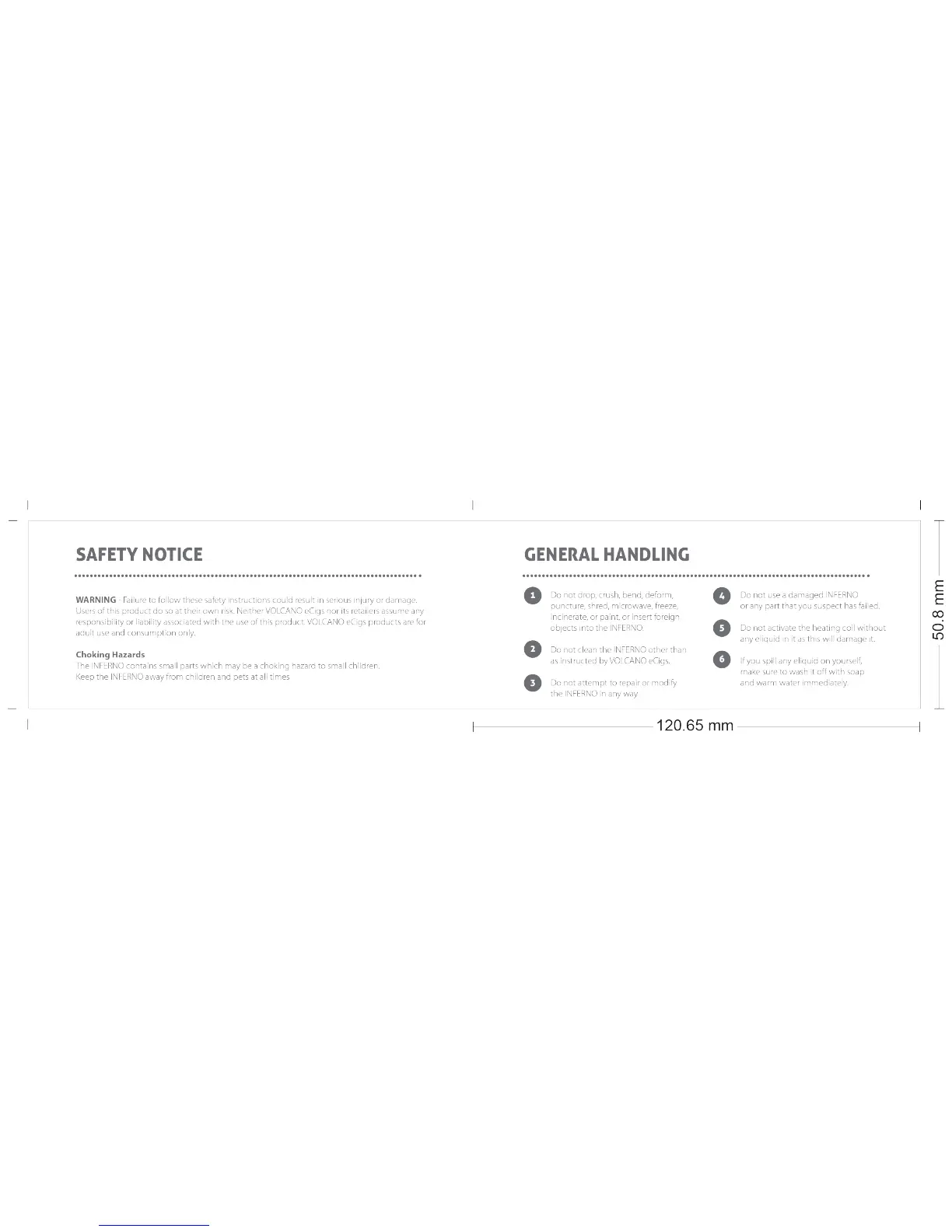 Volcano Inferno - Safety Notice; General Handling Precautions