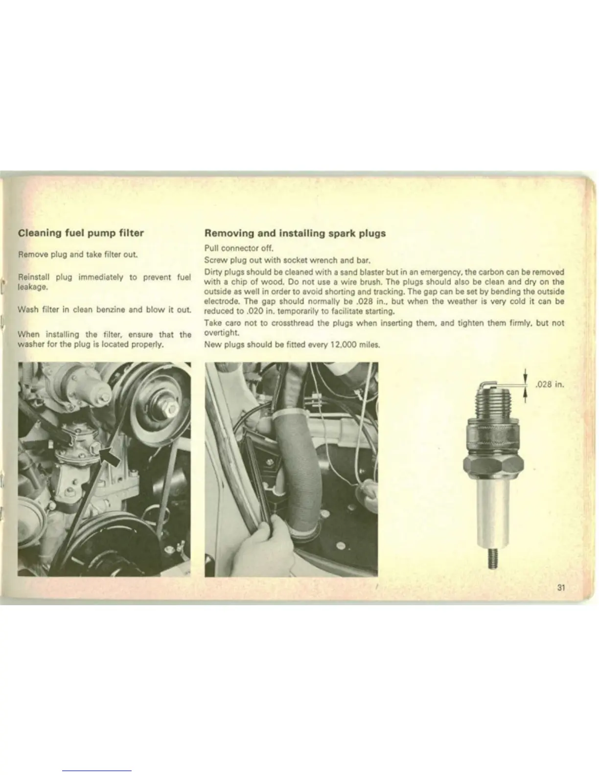 Volkswagen 1968 Bug - Cleaning Fuel Pump Filter; Removing and Installing Spark Plugs