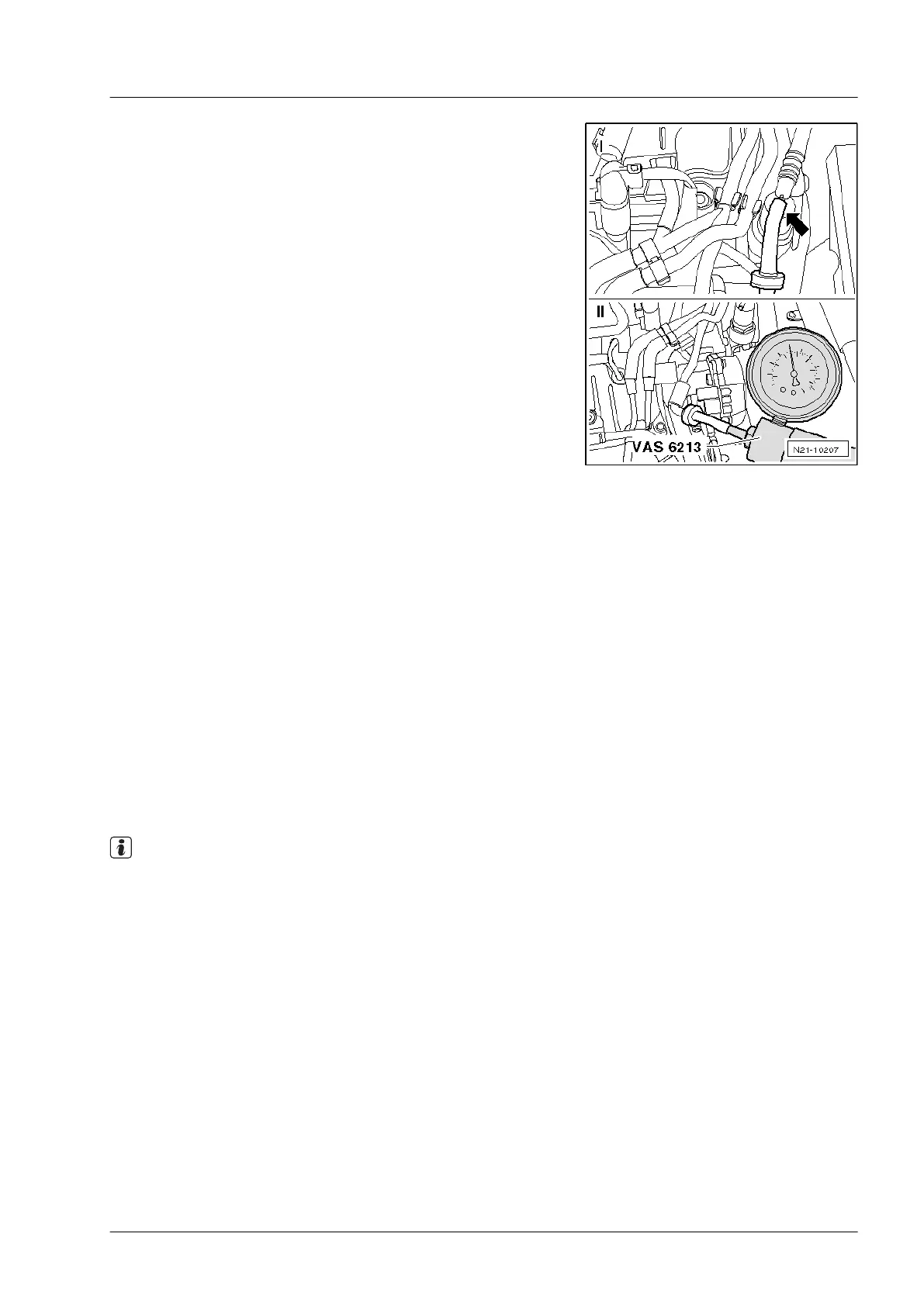 – Observe pressure gauge of hand vacuum pump -VAS 6213-