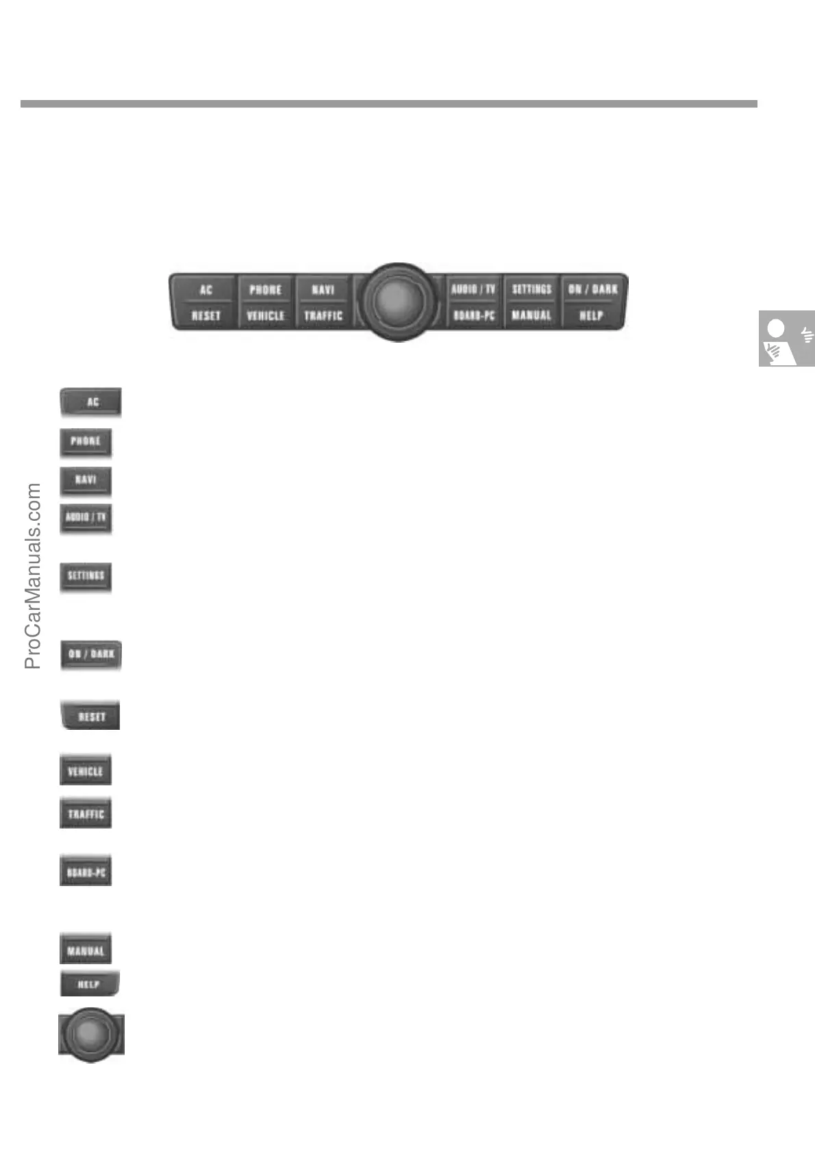 The main menu buttons comprise 12 different functions which control the Infotainment system. The related