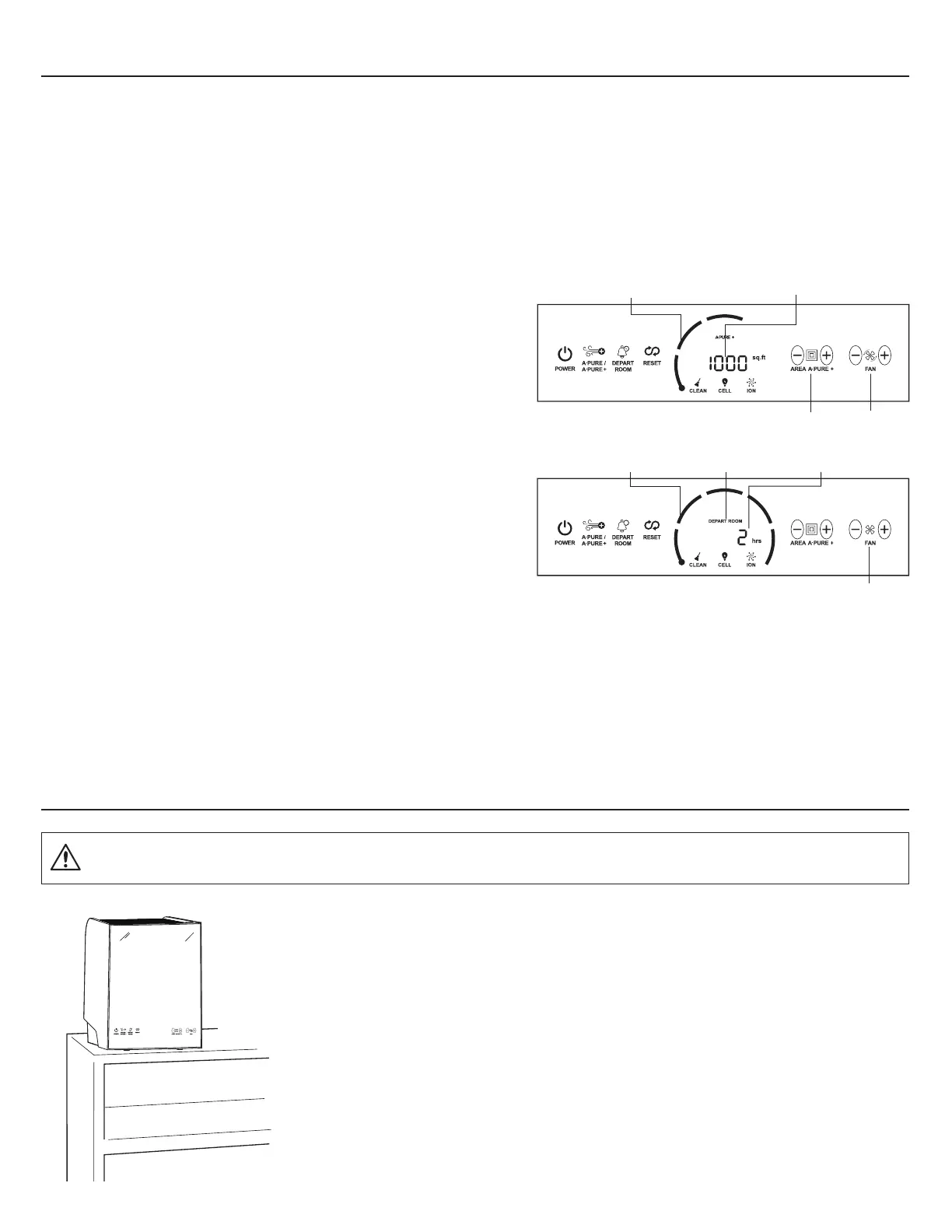 DEPART ROOM MODE: The fan will show maximum, and DEPART ROOM will replace the purifier setting. The amount