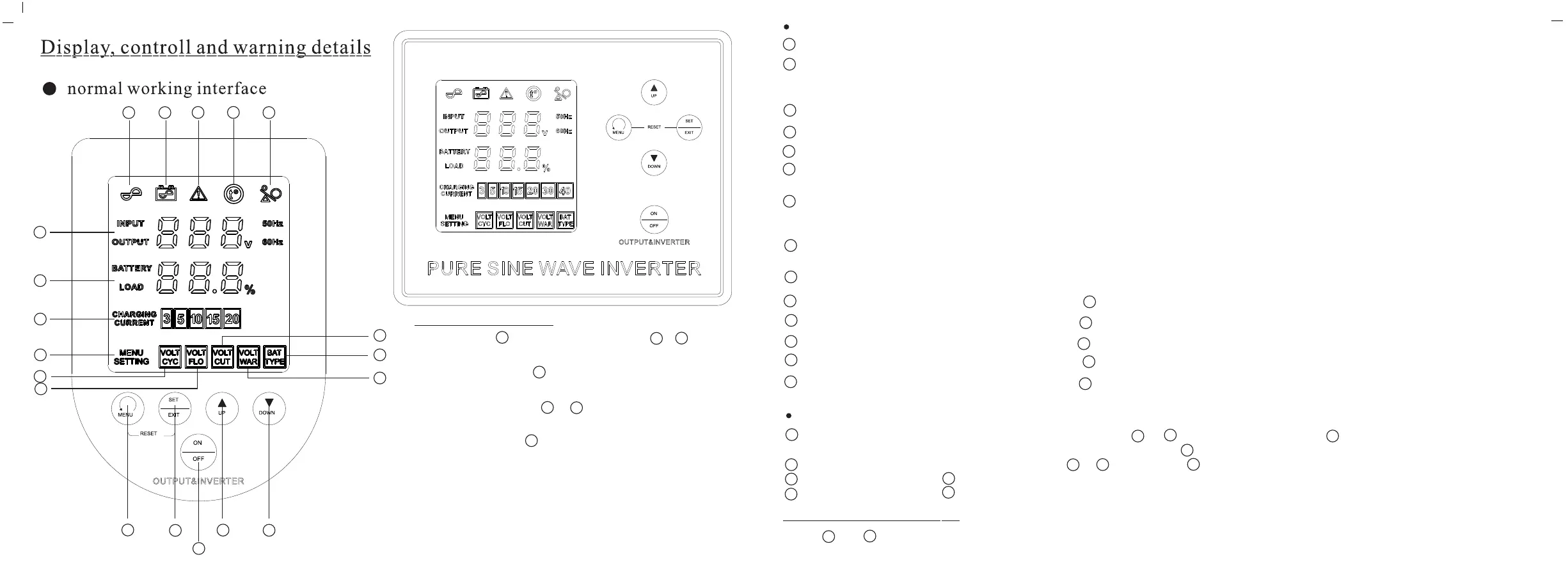 Battery capacity & loading Capacity display: When”BATTERY” lighting on, it shows battery remaining capacity percent