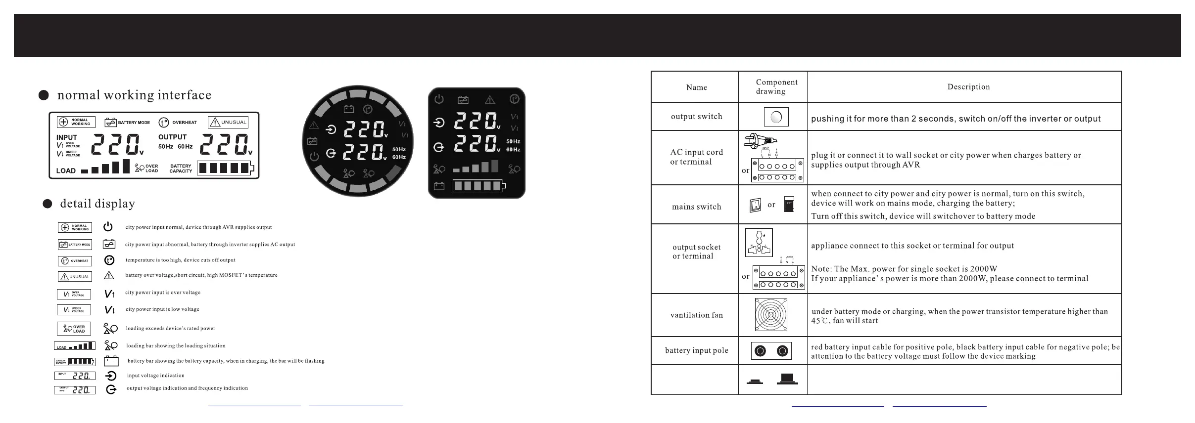 Volt Polska sinusPRO W - DISPLAY AND CONTROL DETAILS; Normal Working Interface; Detailed Display Information; OPERATIONAL DESCRIPTION OF COMPONENTS