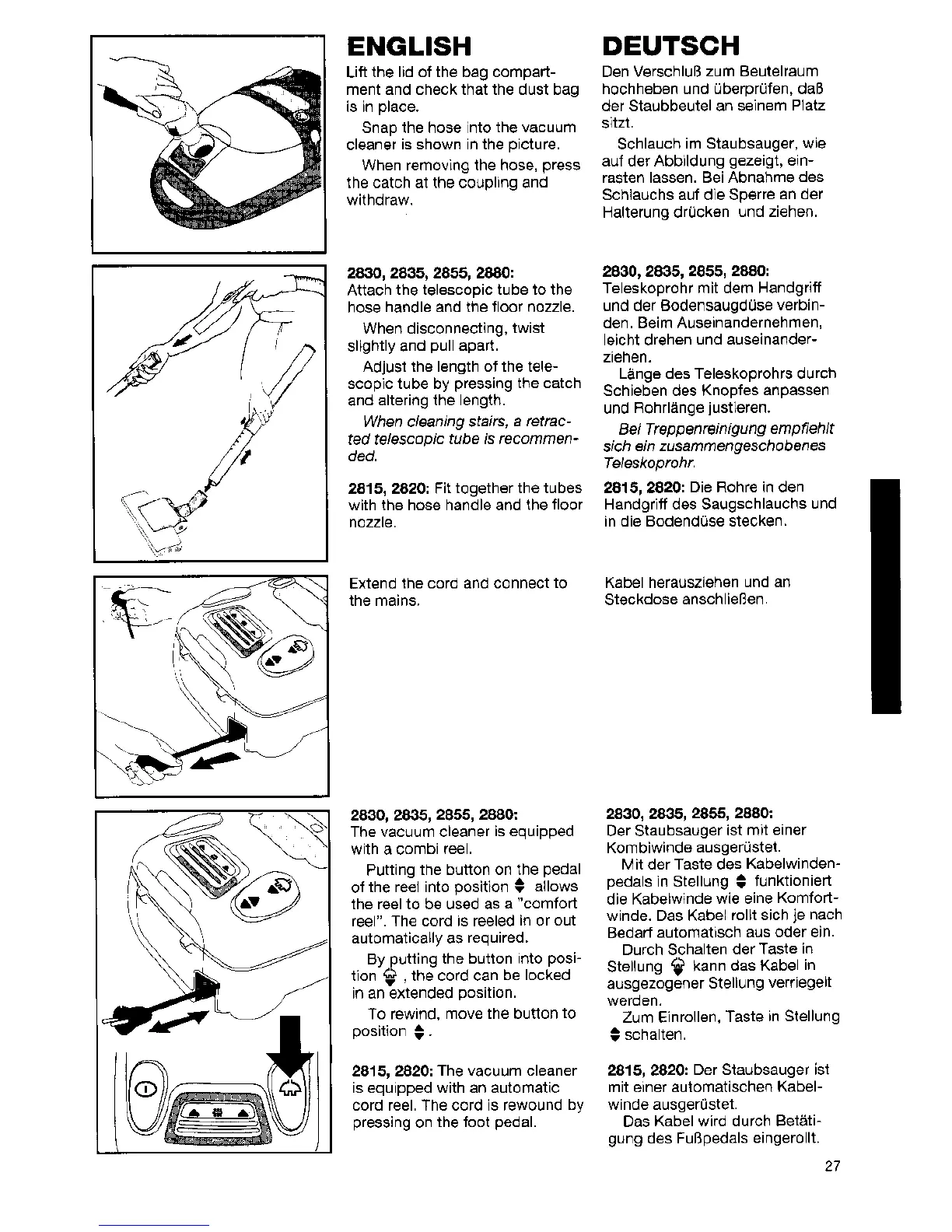 VOLTA Gemini 2815 - Initial Setup and Connection; Preparing the Vacuum Cleaner; Power Connection and Cord Management