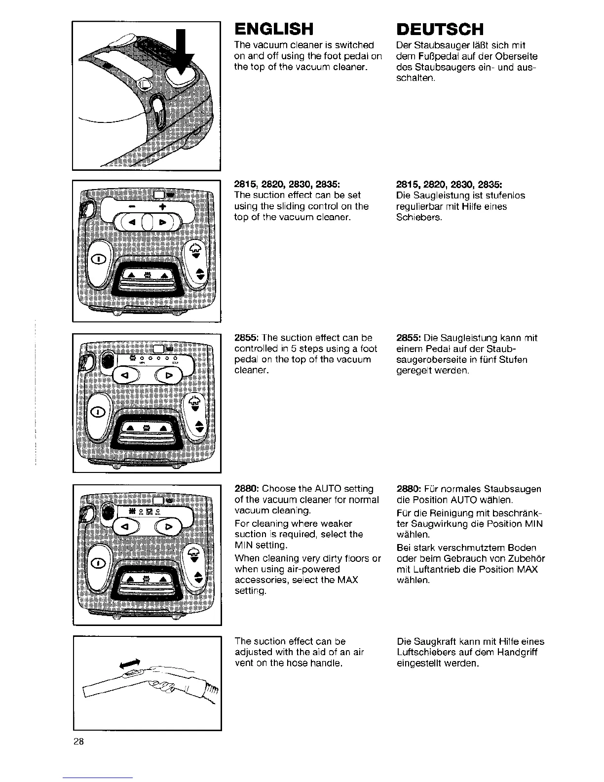 VOLTA Gemini 2815 - Operating the Vacuum Cleaner; Power On;Off Operation; Suction Power Adjustment