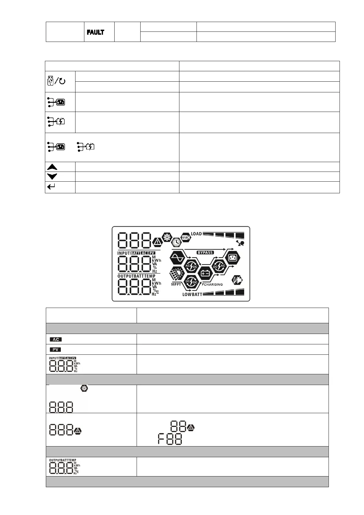 Indicate input voltage, input frequency, PV voltage, charger current,