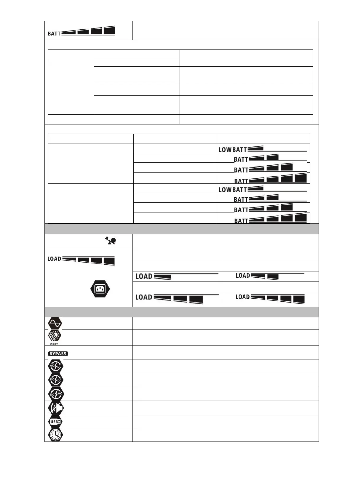 Indicates the load level by 0-24%, 25-49%, 50-74% and 75-100%.