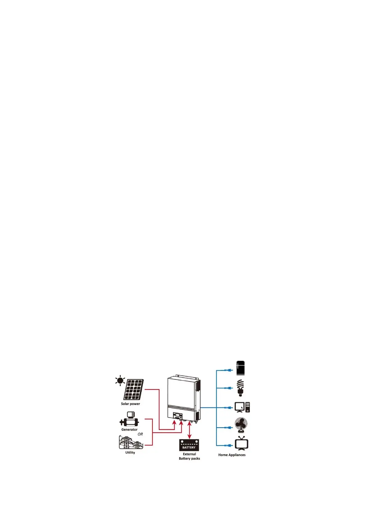 and easy-accessible button operations such as battery charging current, AC or solar charging priority, and
