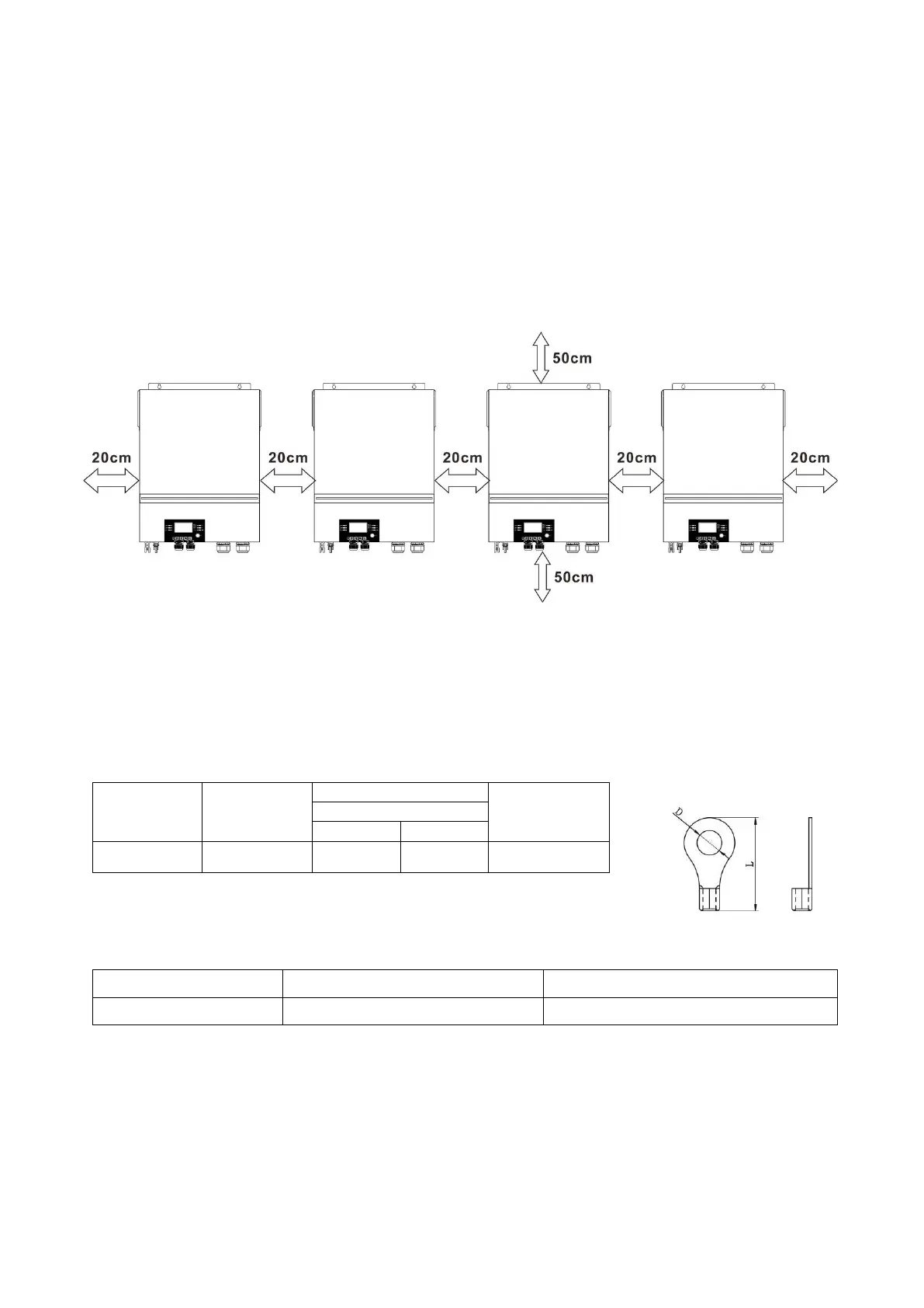 Recommended battery cable and terminal size for each inverter: