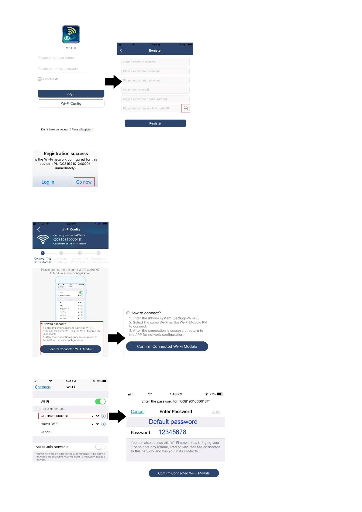 Wi-Fi PN number and enter default password “12345678”.
