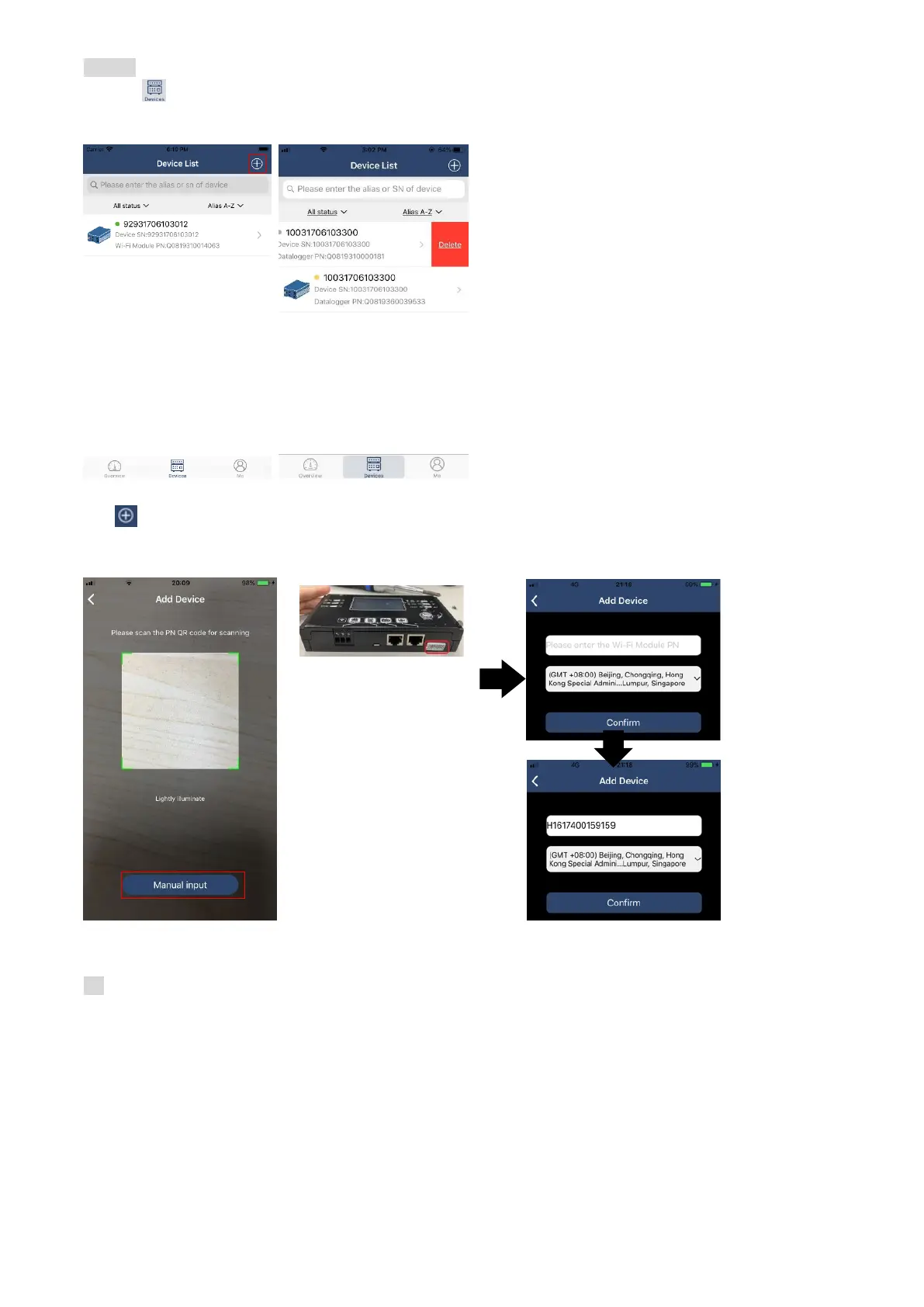 Tap icon on the top right corner and manually enter part number to add device. This part number label is