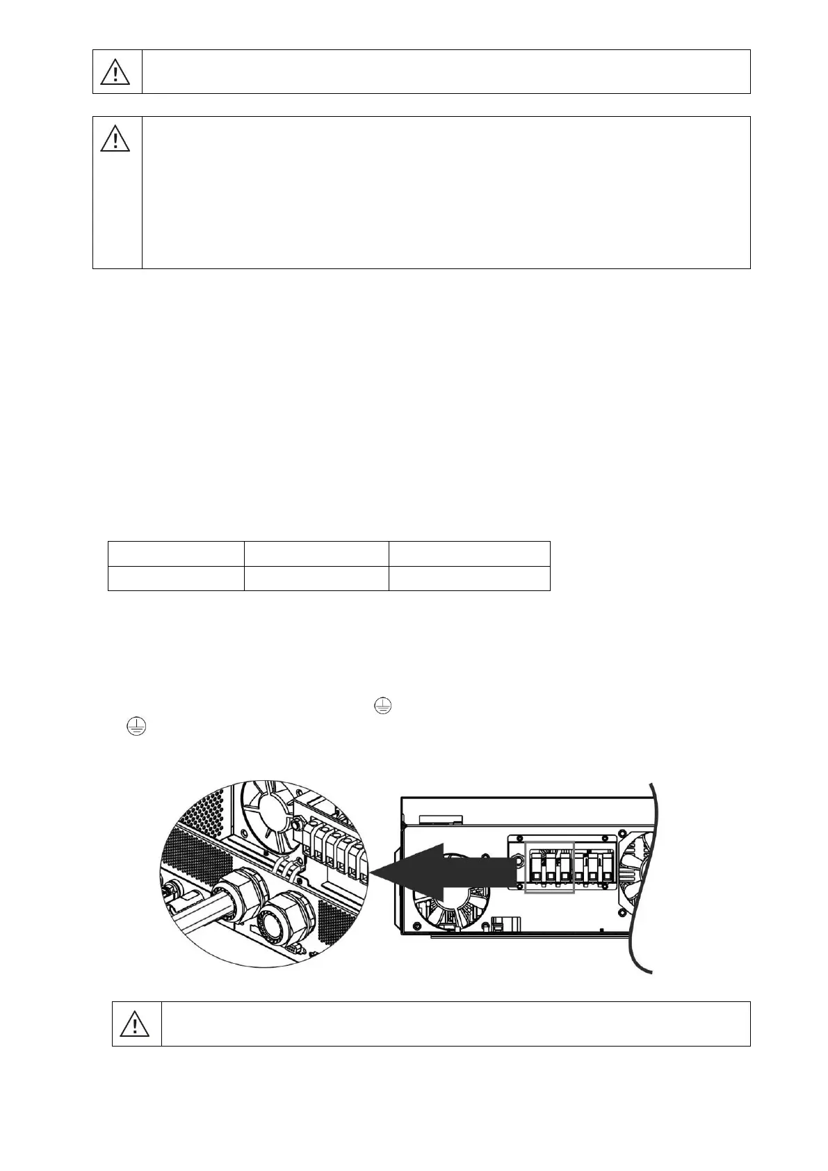 WARNING! It's very important for system safety and efficient operation to use appropriate cable for AC