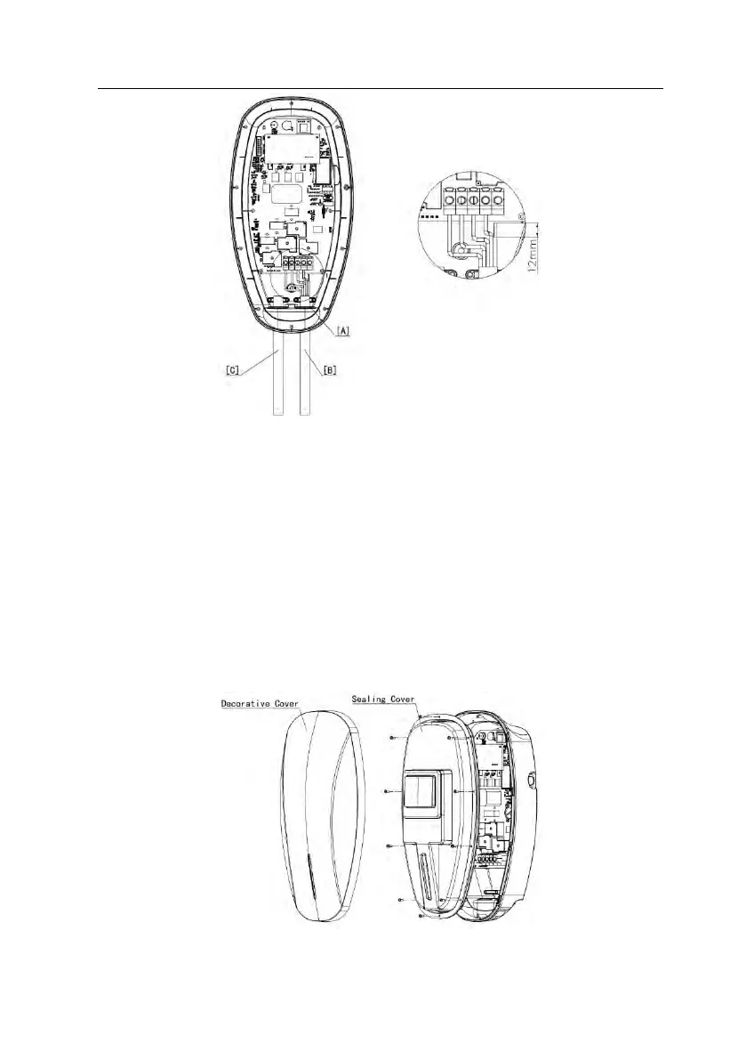 [A] Rubber grommet [B] Input power cable [c] Charging cable
