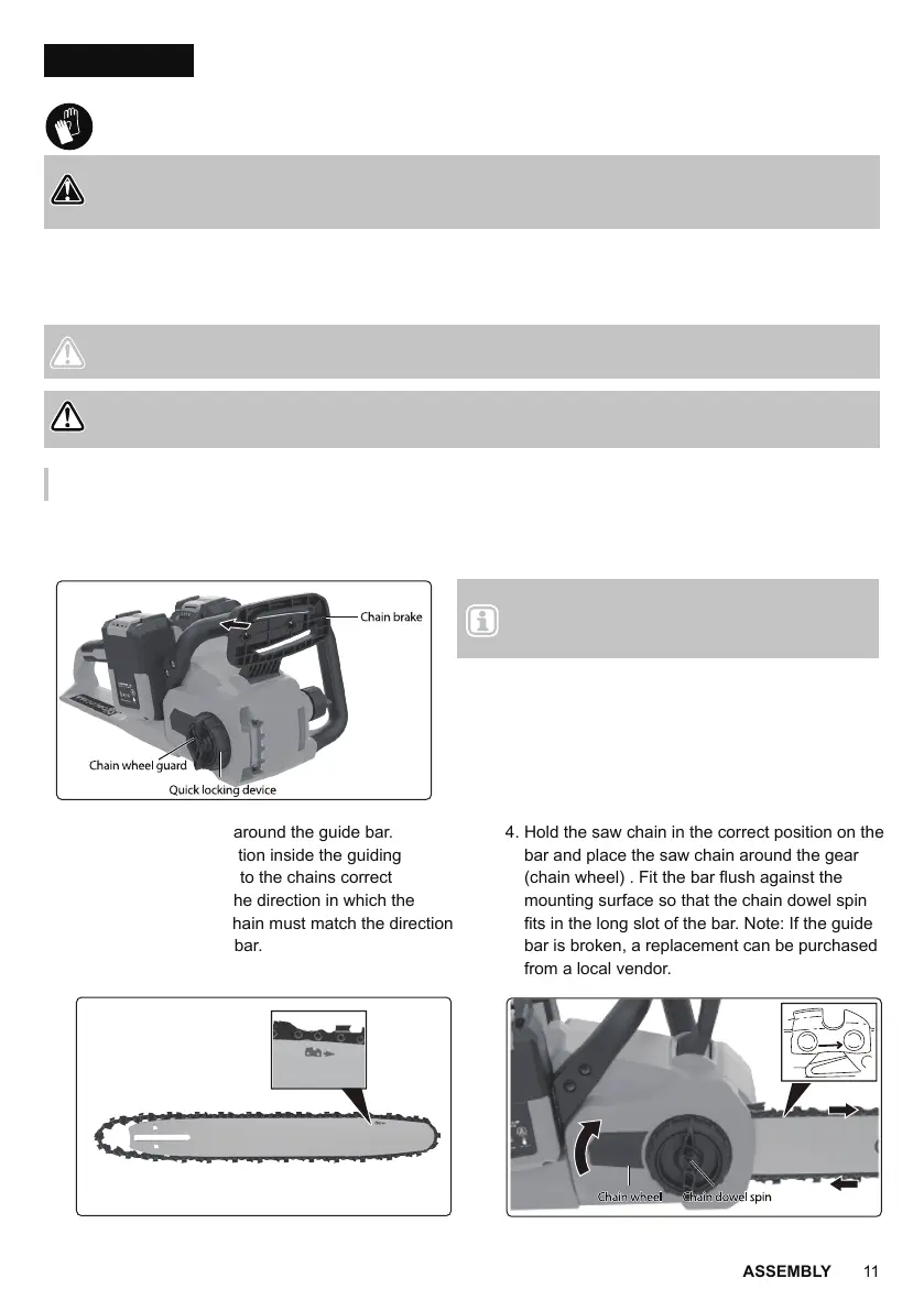 WARNING! Risk of injury! An improperly mounted saw chain causes uncontrolled cutting behavior of the