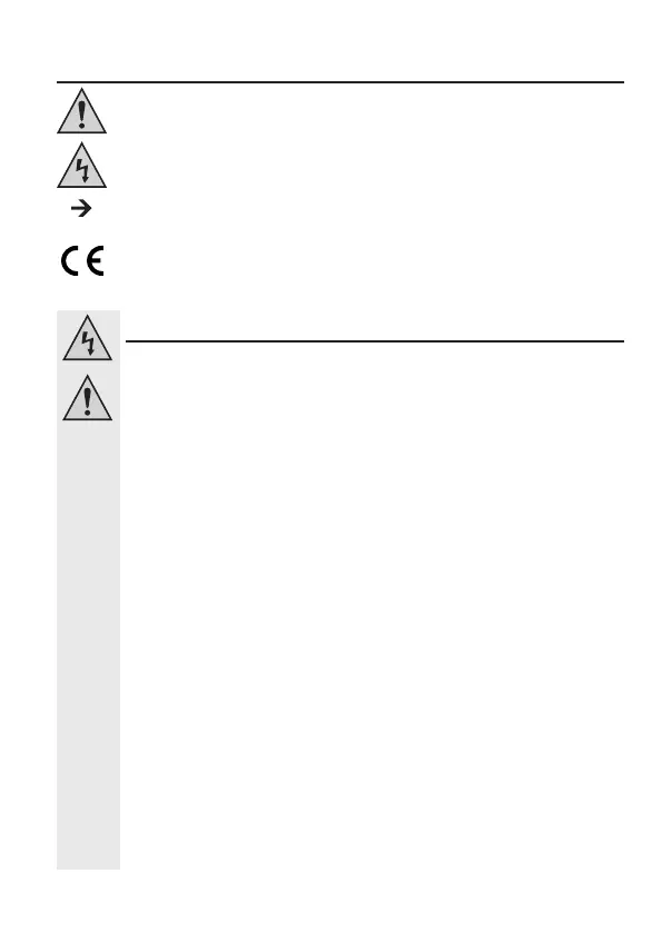 The triangle containing a lightning symbol warns against danger of electric shock or