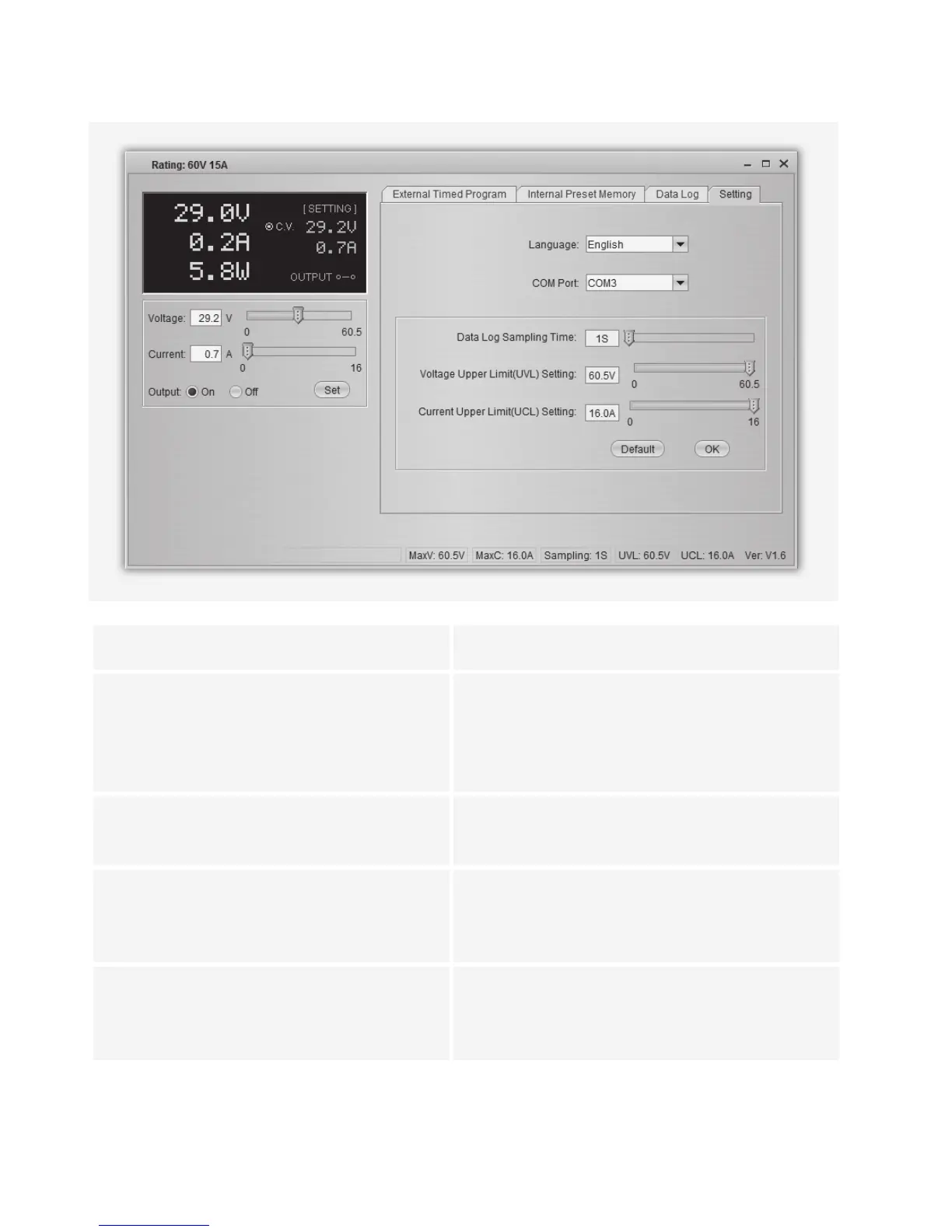 Port COMM (COM Port) Connexion entre l’ordinateur et l’alimentation.