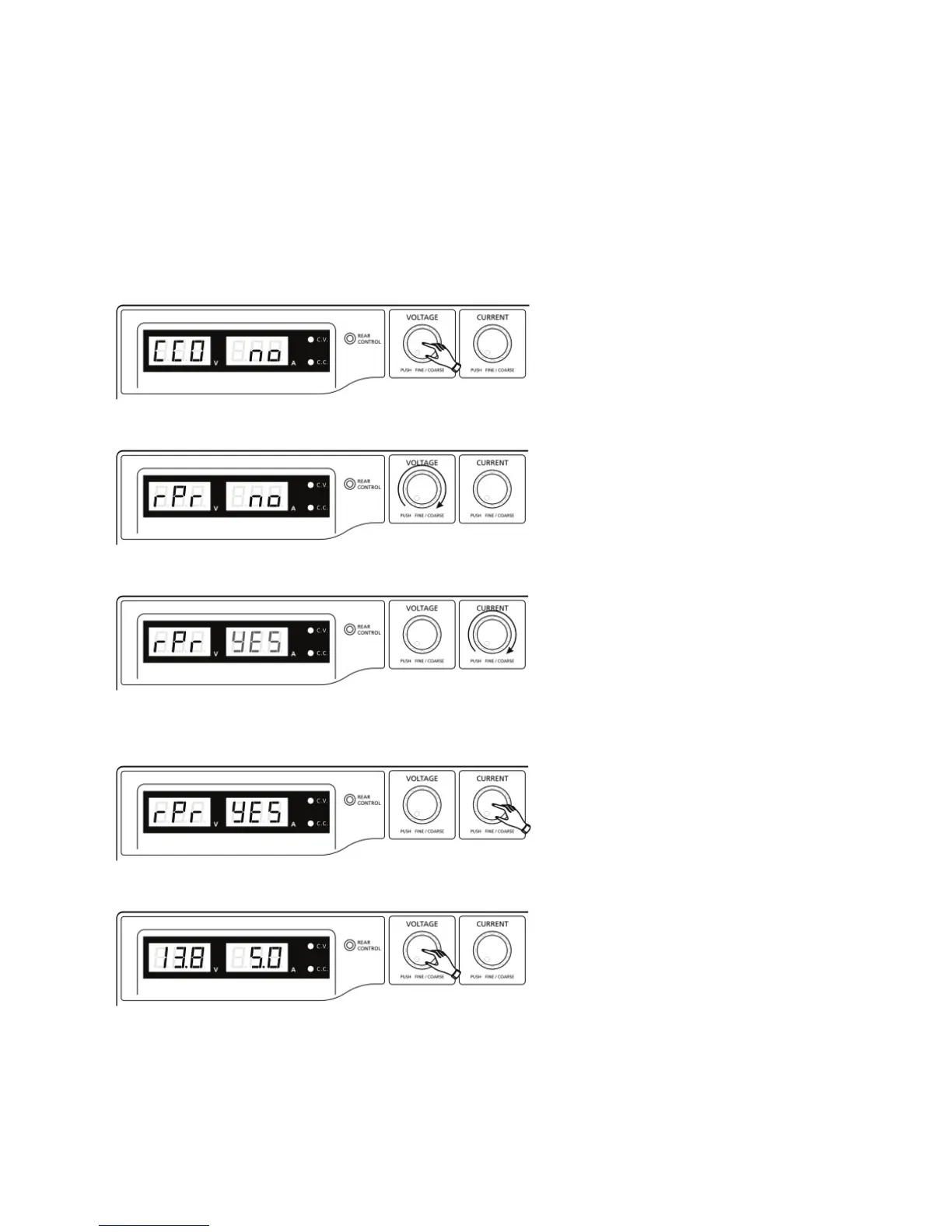 2. Tournez le bouton de commande VOLTAGE jusqu’à ce que « rPr » et « no » soient afchés.