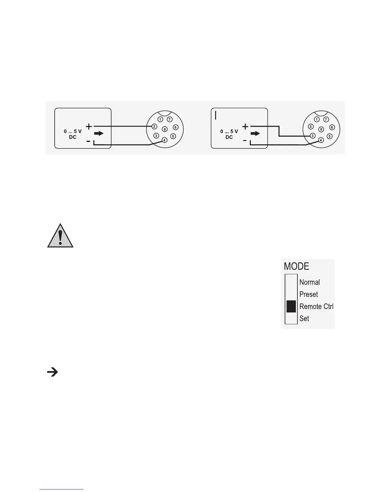 De spanning op de aansluiting van de afstandsbediening mag 5 V niet overschrijden