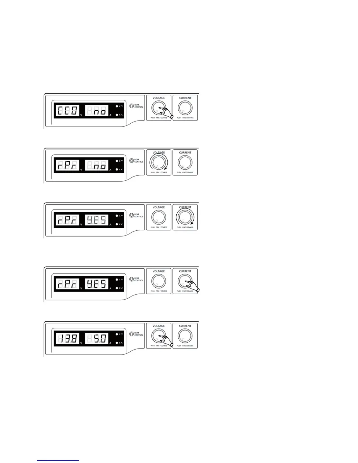 3. Drehen Sie den Regler CURRENT, bis „rPr“ und „YES“ im Display erscheinen.