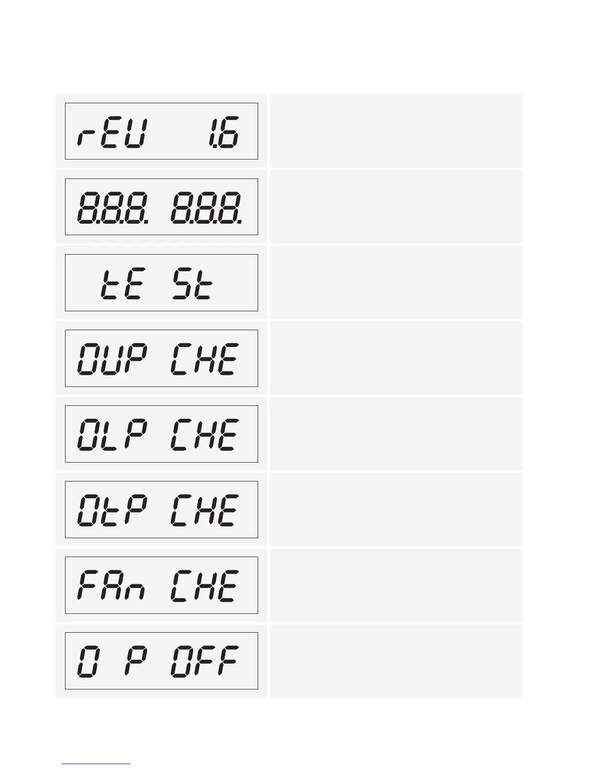 Puis, test des afchages LED «C.V.», «C.C.» et