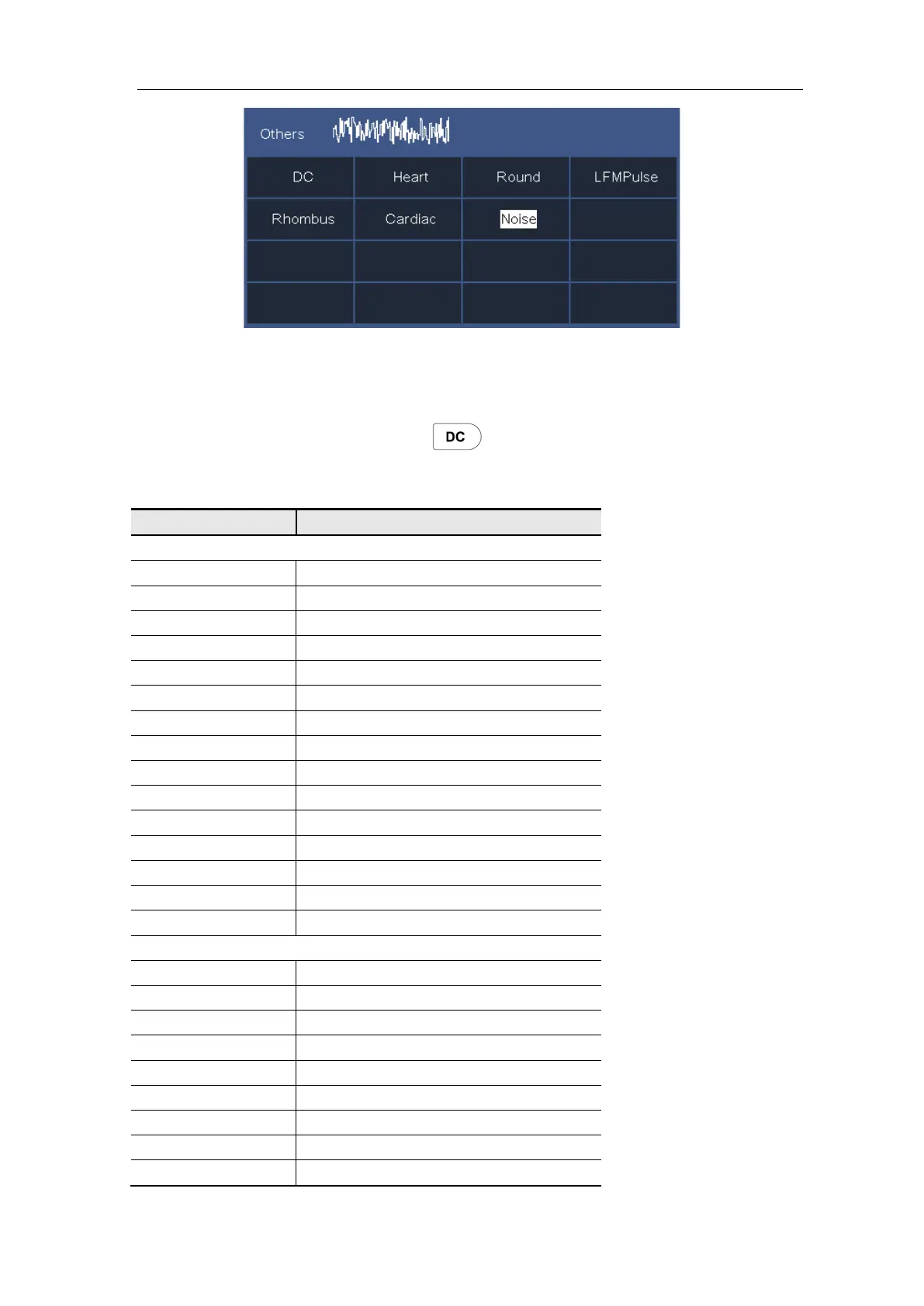 (4) Turn the M knob to select the desired waveform (or touch). E.g. select Noise. Select