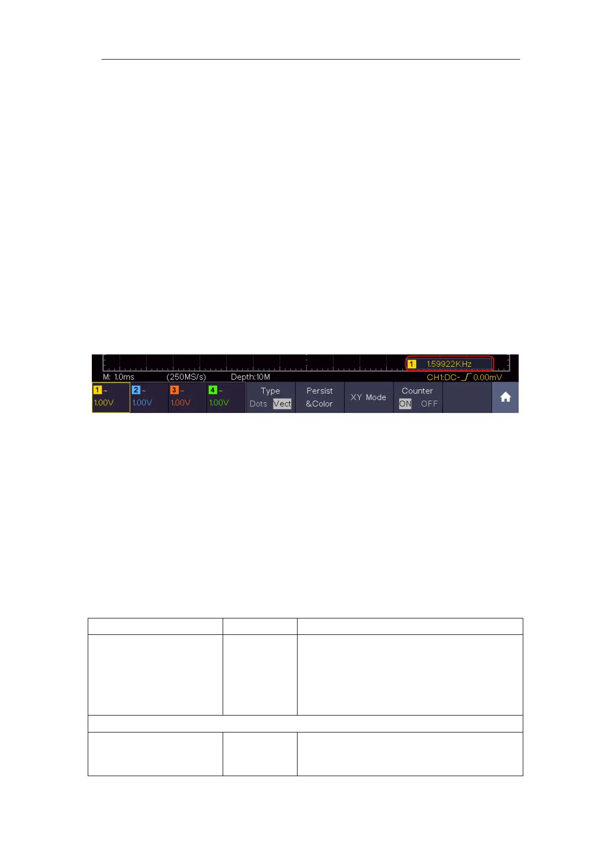 the measured channel is in Edge mode of Single trigger type, the counter can be