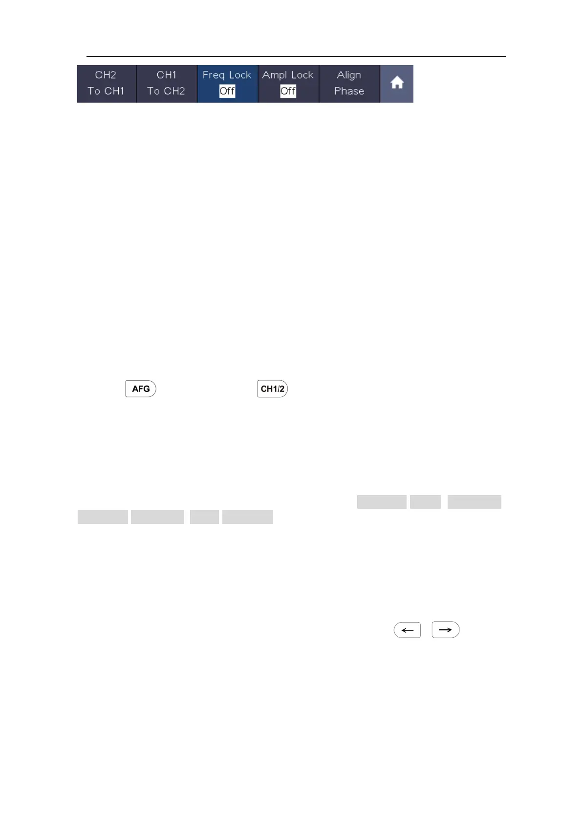 Select Freq Lock in the bottom menu as On, the frequency of the two channels can be