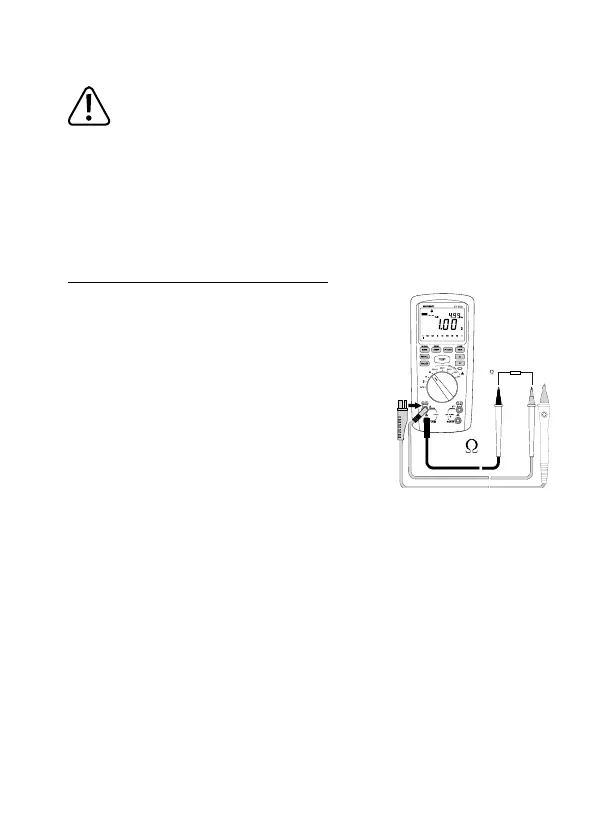 - Schakel de DMM in en kies de meetfunctie „Ω “.