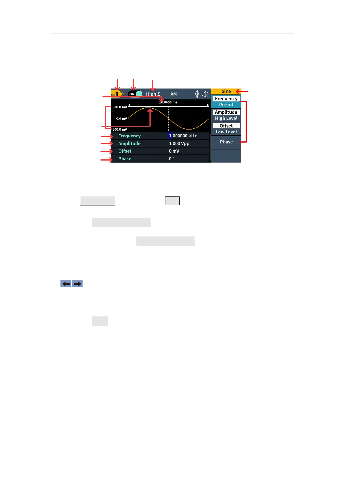 uHz softkeys to select the unit of the parameter, confirm numeric input.