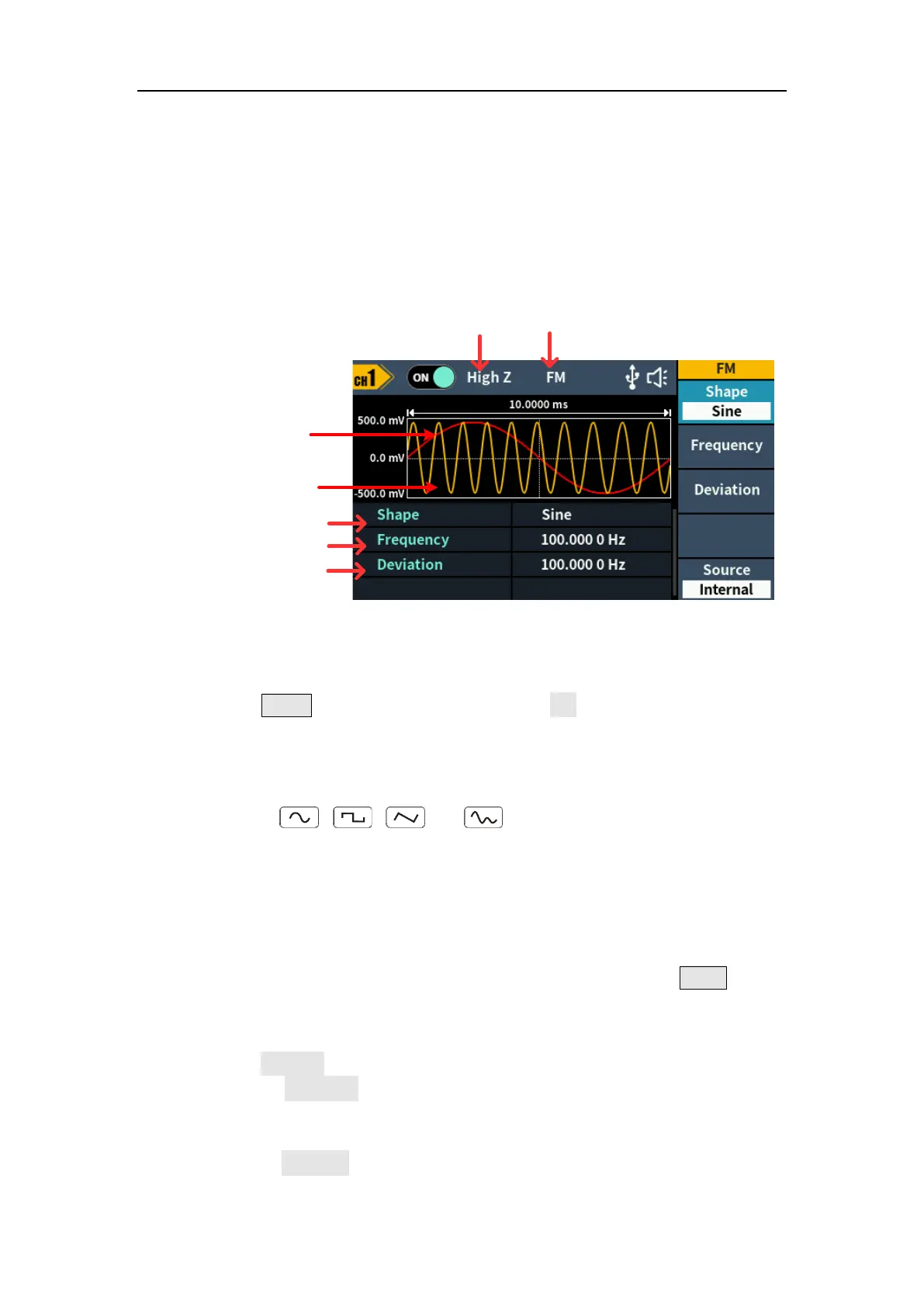 parameters of the carrier wave. Press the corresponding carrier waveform