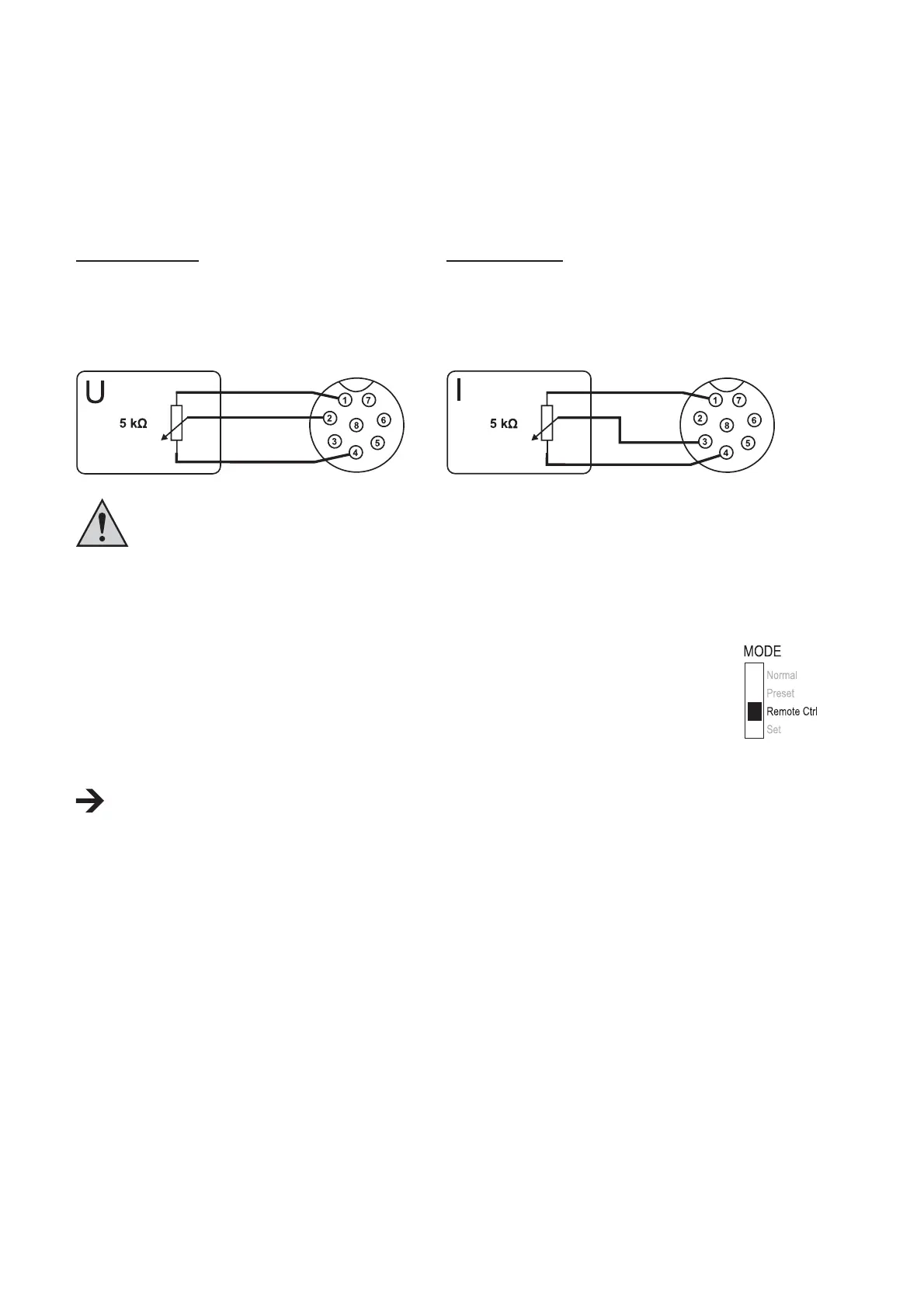 The power unit can be remote-controlled with an external poti (5 Kohm) throughout the range for voltage and
