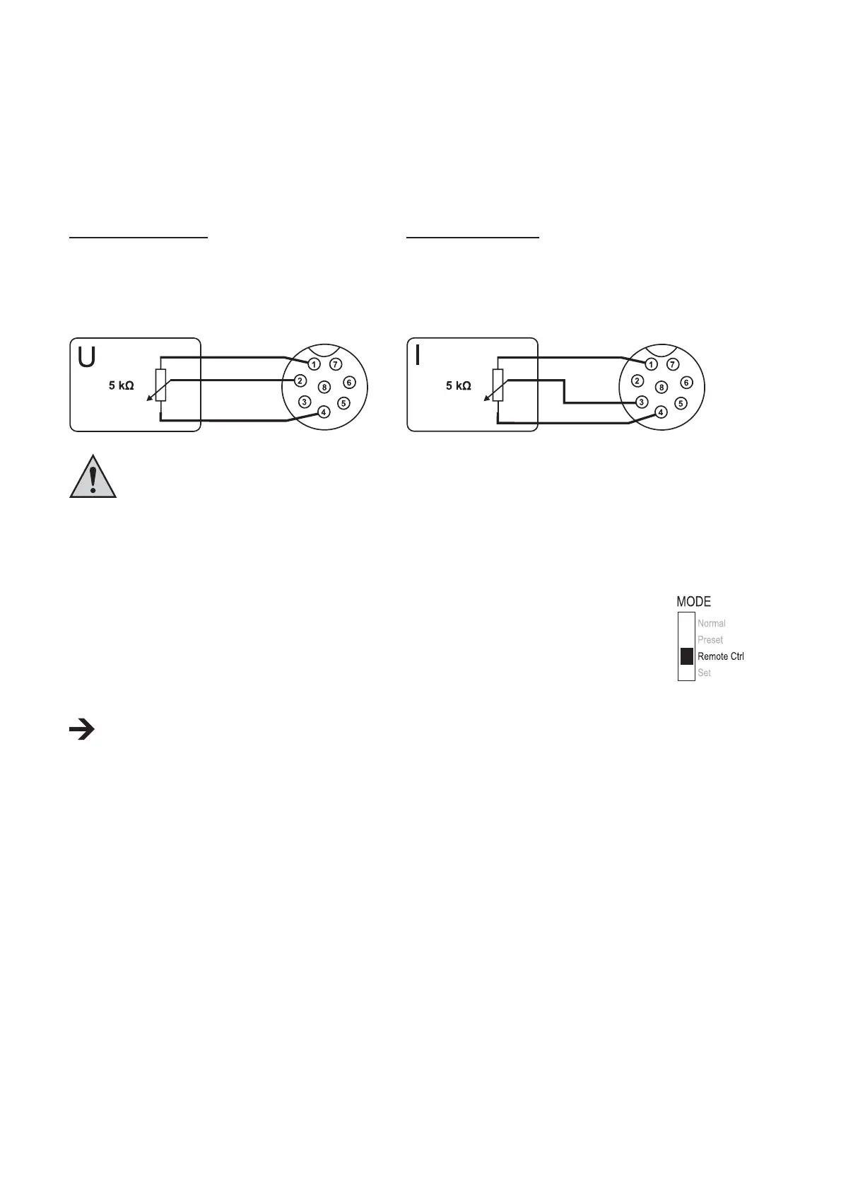 De voeding kan met een externe Poti (5 Kohm) over het gehele bereik voor spanning en stroom op afstand worden