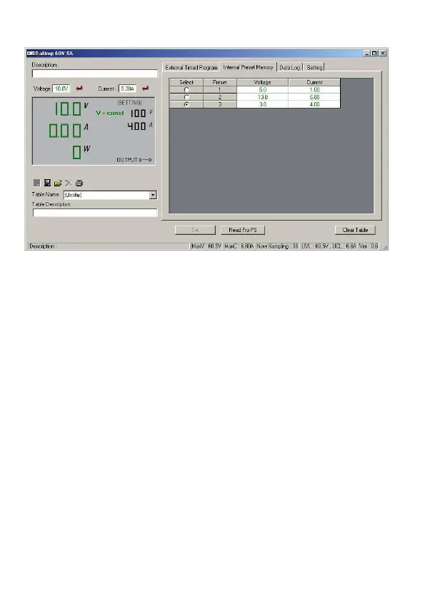Met de software kunt u het vooraf ingestelde geheugen van de voeding lezen, instellen en