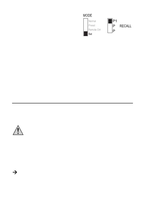 5. Une fois tous les paramètres réglés, repoussez le bouton poussoir « MODE » (8) en position « Preset »