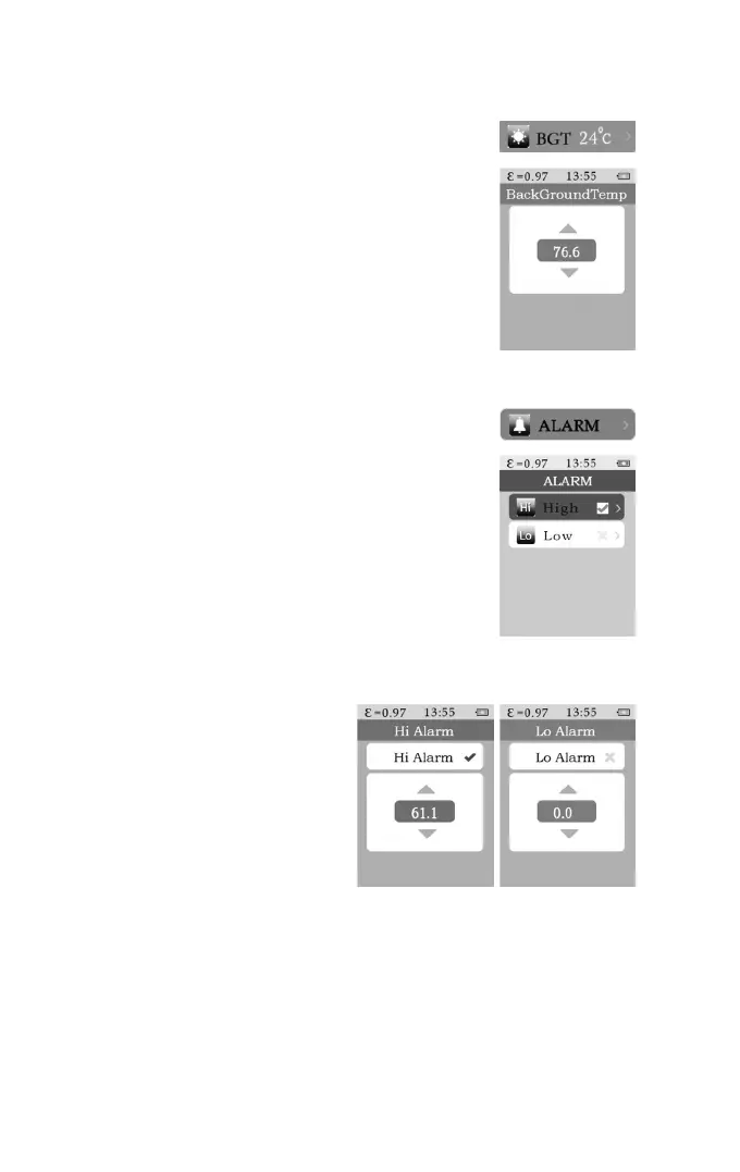 vers le bas (down) (d) jusqu’à ce que ALARM soit en bleu.