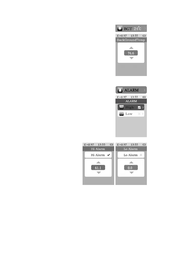 • Druk op de Up- (a) of Down- (d) toets tot ALARM blauw kleurt.