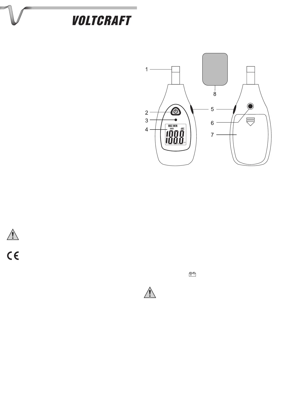 Pour son fonctionnement, l’appareil nécessite une pile monobloc de 9 V (type IEC 6F22).