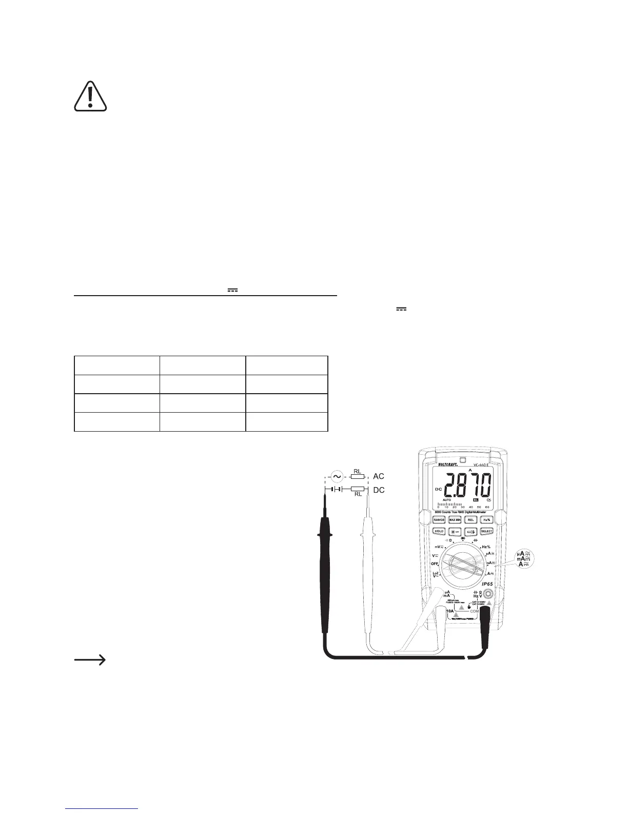 Zur Messung von Gleichströmen (A ) gehen Sie wie folgt vor: